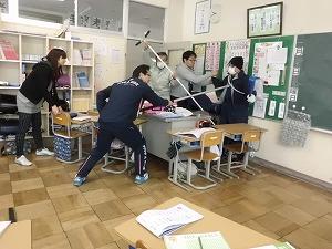 昇降口と体育館に分かれ、隅々まできれいにしました。