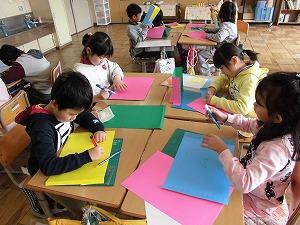てから,そこにクレヨンで絵を描きました。泡立たせ名人にみんなの称賛が起きるなど,1組も