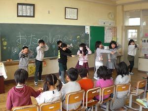 各クラスともグループに分かれて,自分たちで配役を決めたり動きを考えたり