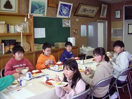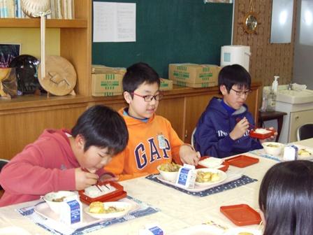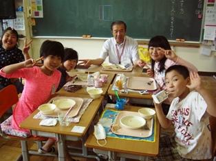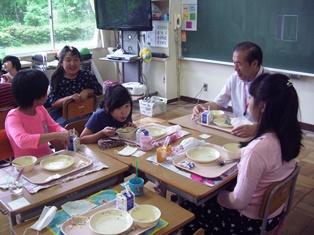 授業の後、4年1組で給食を子どもたちと共に召し上がっていただきました。