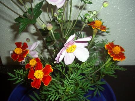 マリーゴールドと小菊、そしてハナタデでしょうか。