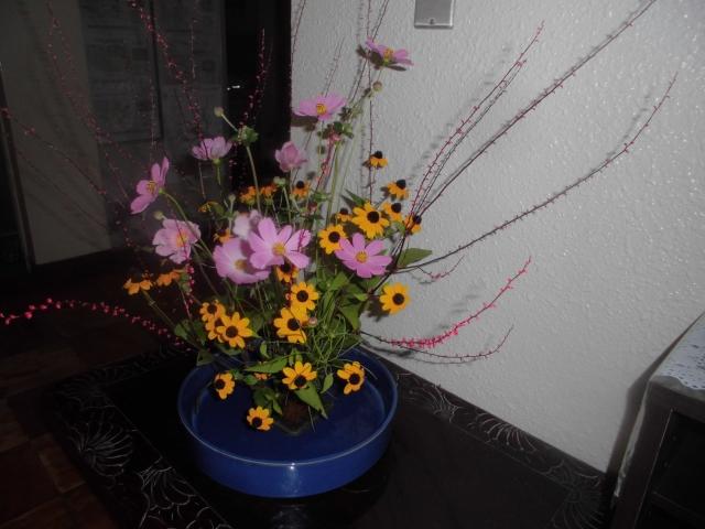 秋桜と秋明菊が飾られ、玄関にも秋の気配が訪れています。