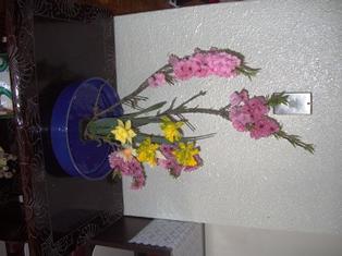 カーネーション、コスモス、黄色とピンクの小菊です。