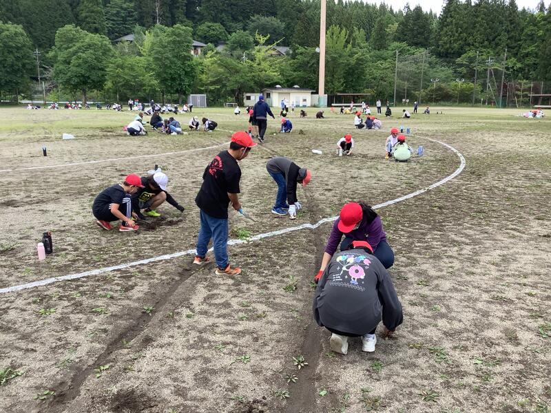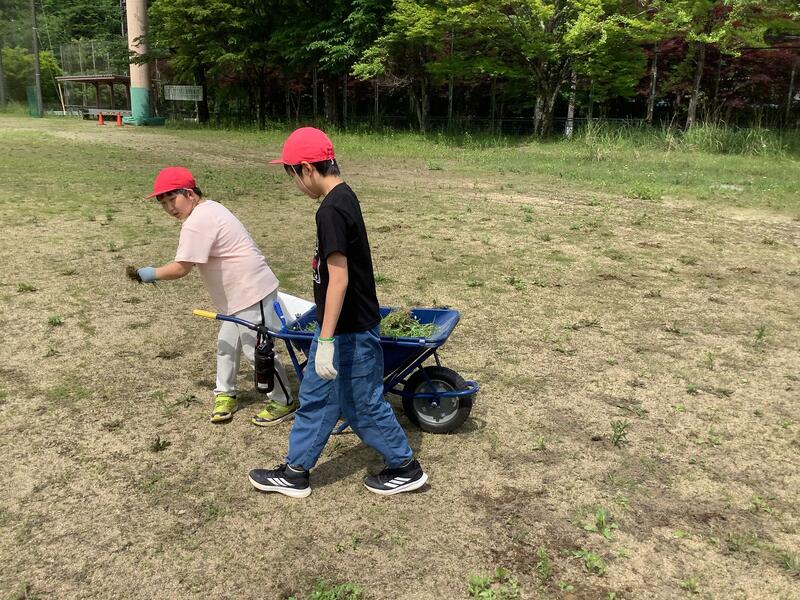 暑い中たくさんの保護者の方が協力してくださり、校庭の除草作業を行うことができました。