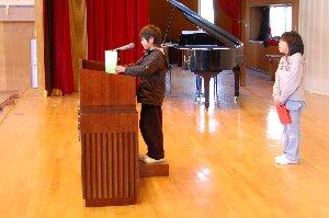 各クラスの代表者が校長先生から修了証書を受け取りました。