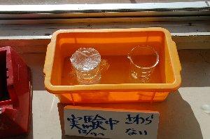実は日の光がまったく当たらない(日かげの)ろうかにも同じようにビーカーを置いてあります。