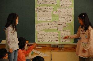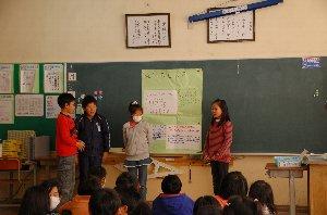 4年生の教室では,インフルエンザで延期が続いていた総合的な学習の時間の発表会が行われました。