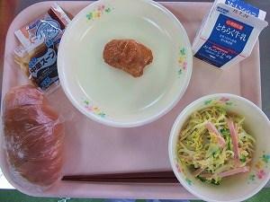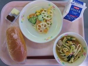 「丸ミルクパン 牛乳 ミルメーク 鶏のレモンソース れんこんサラダ