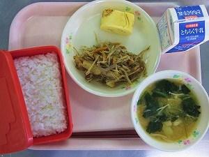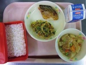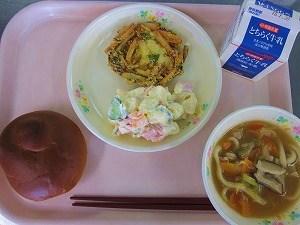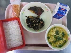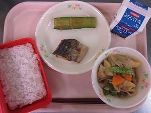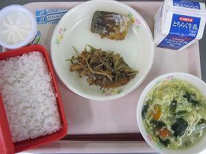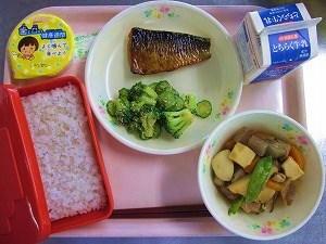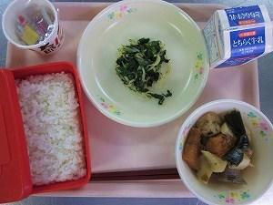 「ご飯 牛乳 さばの味噌煮 五目きんぴら むらくも汁」です。