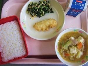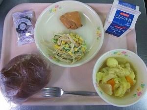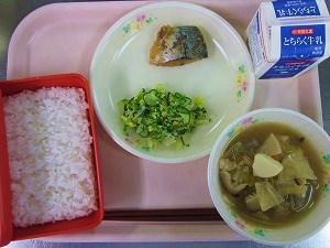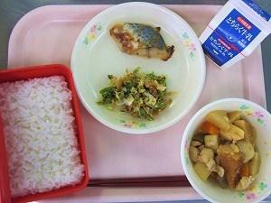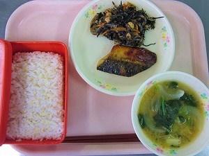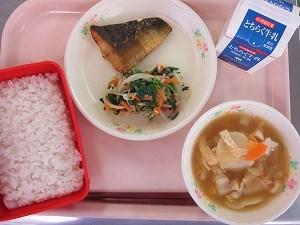 「ご飯 牛乳 ブリの照焼き 磯和え どさんこ汁」 です。