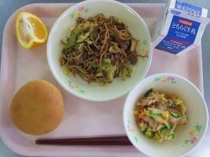 給食週間メニュー1日目は、「なつかしの給食」で「ソフト麺」です。
