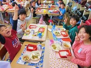 先日、児童から「いつもおいしいきゅうしょく ありがとうございます」