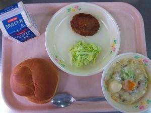 「ご飯 牛乳 和風煮込みハンバーグ ごまあえ みそ汁」です。
