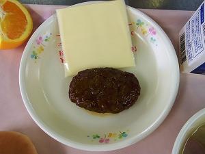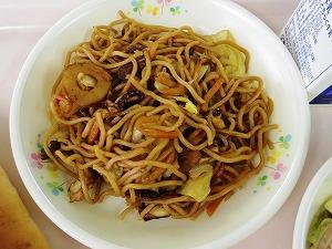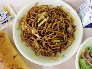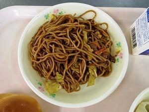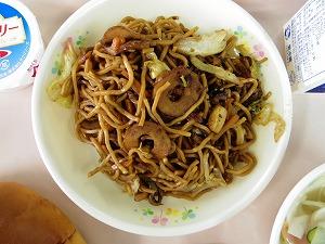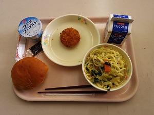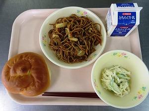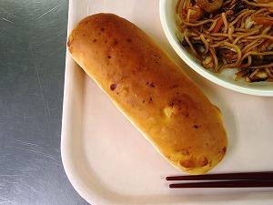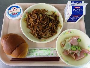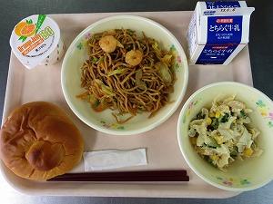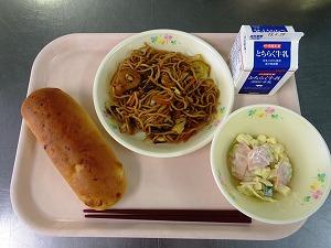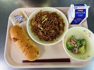 チーズパン 牛乳 焼きそば 温野菜サラダ みかんジャム です。