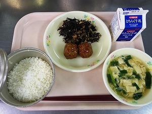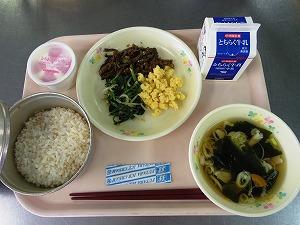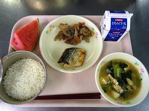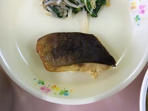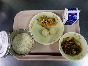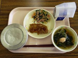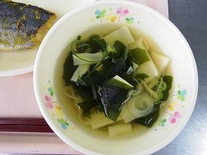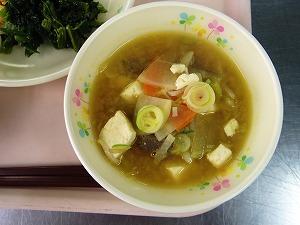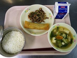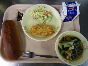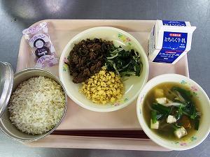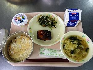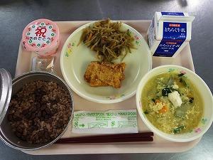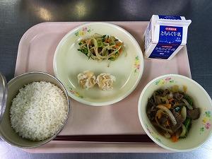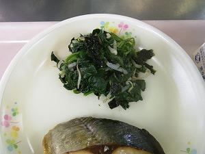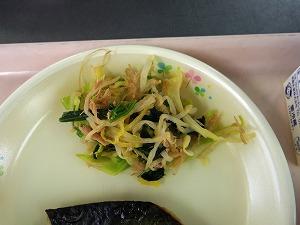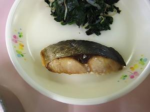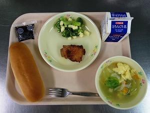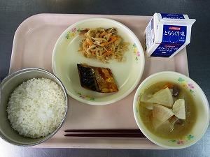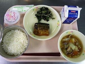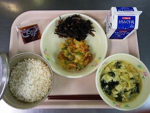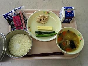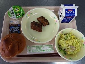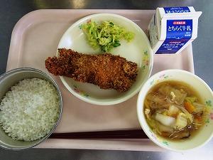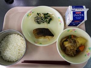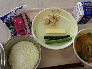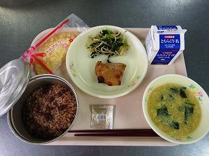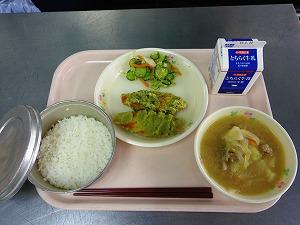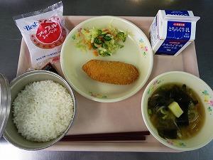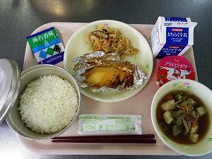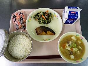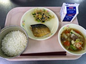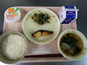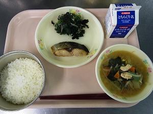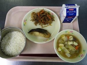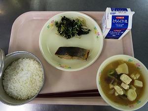 ご飯 牛乳 アジのねぎ塩焼き 磯香り和え 具だくさん味噌汁 です。