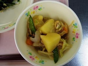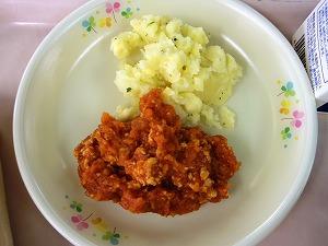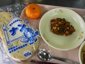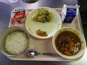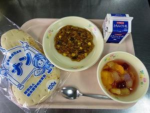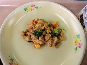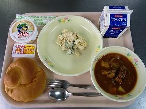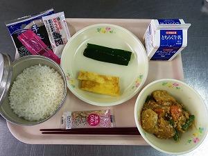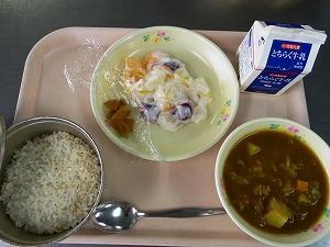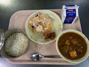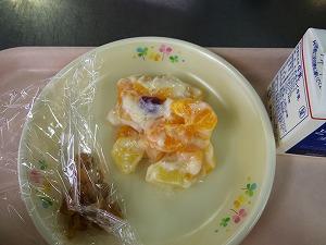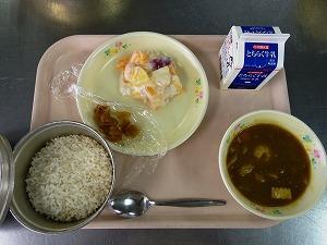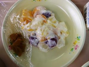 今日は、チキンカレーにフルーツヨーグルト和え。