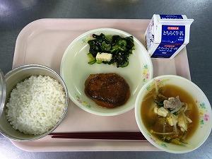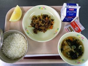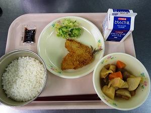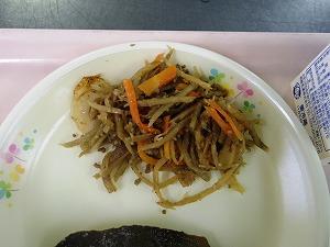 ご飯 牛乳 ホッケ文化干し 五目きんぴら 田舎汁 です。