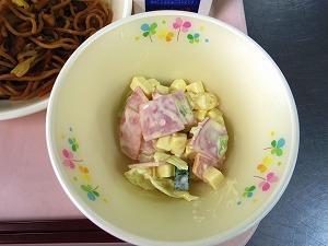 今日は、毎月定番の焼きそばに、大根とホタテのサラダです(^^)♪