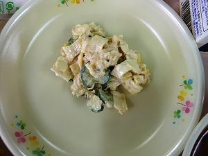 ちなみに、今日のサラダは大根・きゅうりとホタテ水煮缶詰、マヨネーズ、