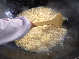 炒めてしまうと崩れちゃう!と言って、水を入れてから煮てくれました。