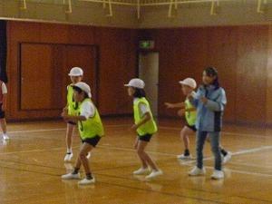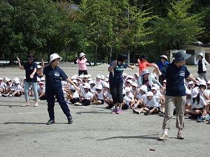 全校児童の踊りには,“踊り隊”の皆様が,傘踊りや石投げ踊り・手踊りの指導を