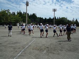 大雨の後の11日(金),運動会で披露する和楽踊りの練習を行いました。