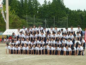 放課後に練習をがんばり見事な演奏をしてくれました。  48人技のピラミッドを2組,全員で作りました。