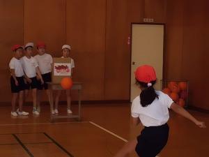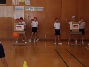 2年生の体育では,今「ボール投げゲーム」を行っています。