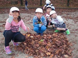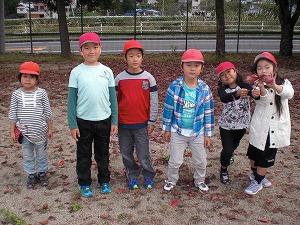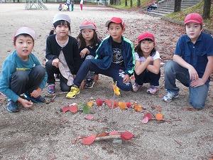 赤や黄色に色付いた葉や,木の実などを見つけました。