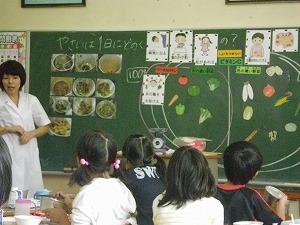 子どもたちは,積極的に栄養士の質問に答えていました。