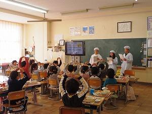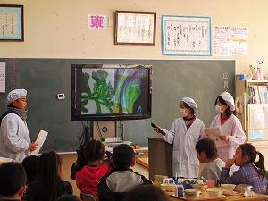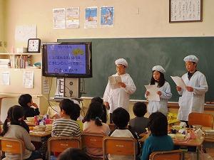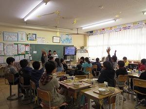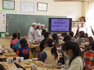 食に関する話やクイズをして、一緒に給食を食べるというもの。