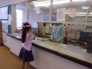 図書委員会の児童が貸し出しをしています。 みんなで楽しく本を読んでいます。