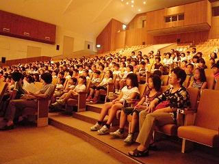 校長先生のお話では,校長先生が持っているものを,子どもたちが真剣に見ています。