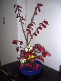 本校の生け花ボランティアのU様がぼけの花とポンポン菊を
