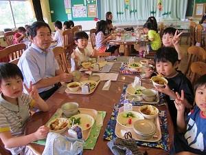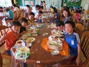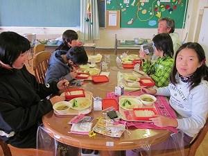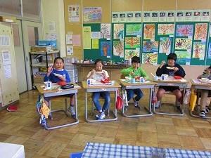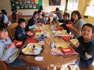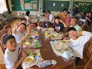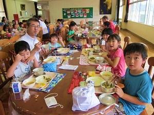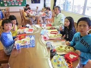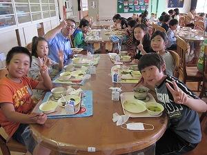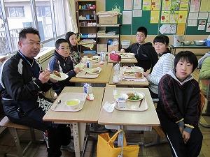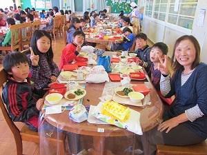 普段は職員室にいる先生方と一緒に食べることができて、嬉しそうな5年生♪