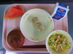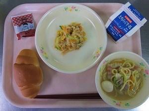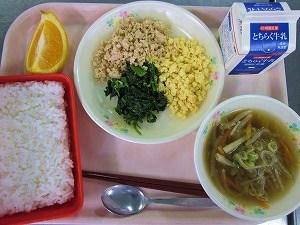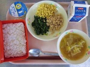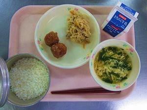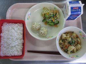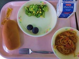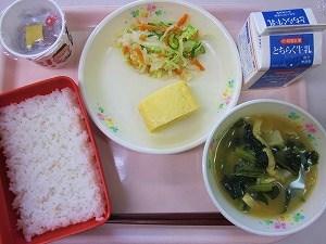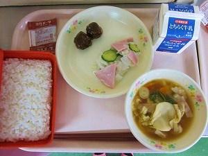 明日の給食ですが、通常より1時間以上給食が早まる都合により、