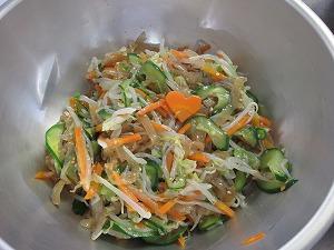 こちらは梅肉和え。ねり梅と醤油、かつお節、炒りゴマで和えます。