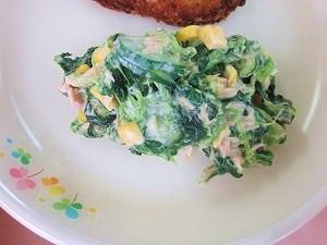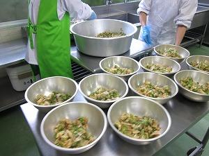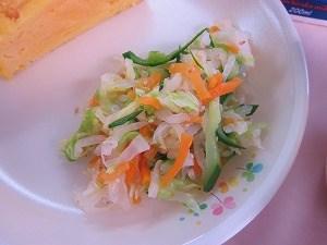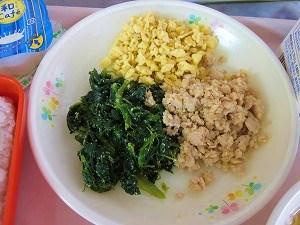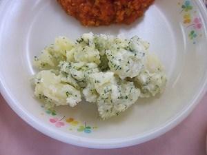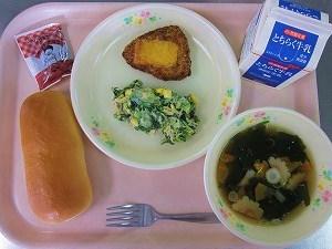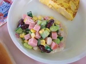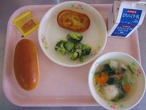 給食では・・・温度管理の都合もあり、温かいオムレツの付け合わせとして、