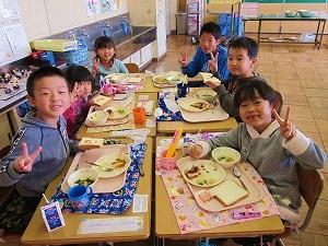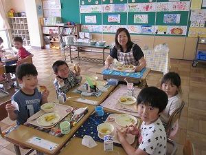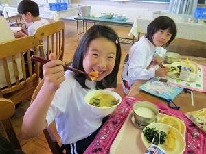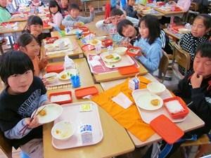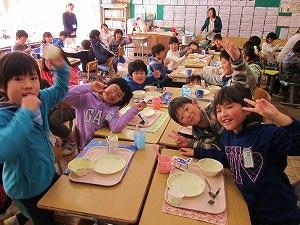 たくさんの児童が、「今日は、特にスープが美味しかった」と声を かけてくれました。