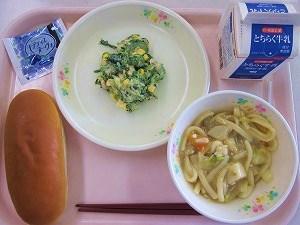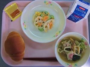 23日(金) バターロール アプリコットジャム 牛乳 きつねうどん れんこんサラダ