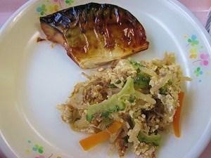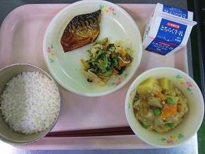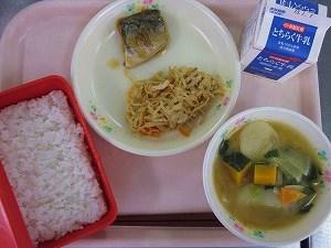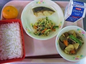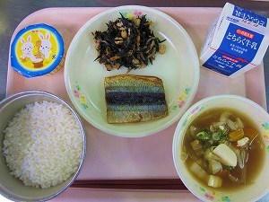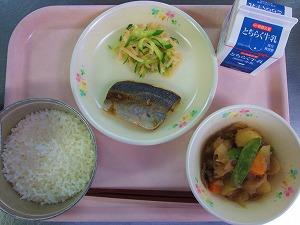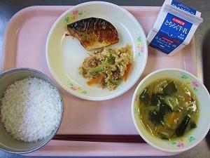 「ごはん 牛乳 さばのみぞれ煮 切り干し大根の煮物 かぼちゃ入りすいとん汁」 です。