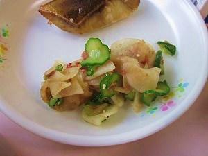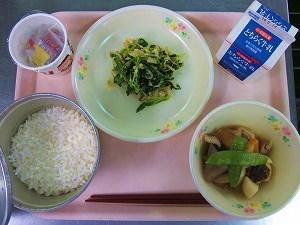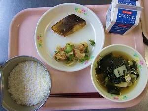 「ご飯 牛乳 とろホッケ白醤油焼き 梅肉和え 若竹汁」です。