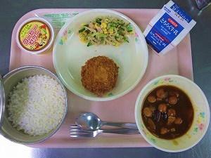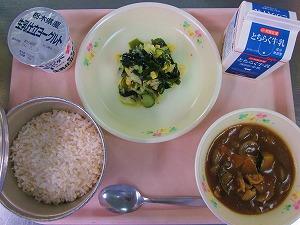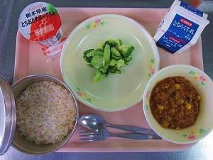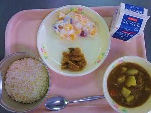 「五穀ご飯 ポークカレー 牛乳 ヨーグルト和え」です。