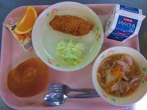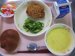 味噌カツとコーンスープの組み合わせでエネルギー・脂質ともに高めなので、