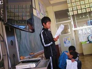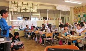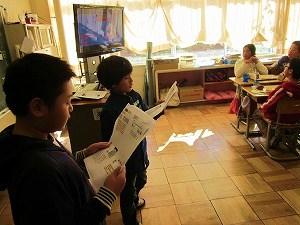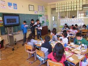 今までは上級生が下級生のクラスを訪問していましたが、今回は4年生2人組が訪問しました。