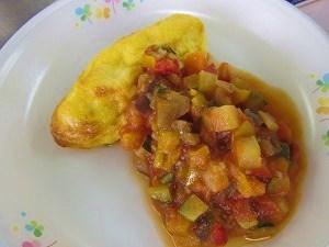 今日は米粉パンだったので、温かいラタトゥイユと一緒に食べたら、