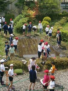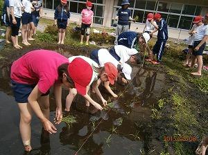まっすぐ植えられるように,ポイントを作ったよ!おかげで,まっすぐ植えられました。