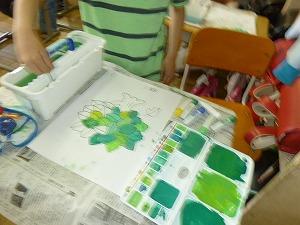 「葉っぱの緑をみんな違う色で描いてみよう」