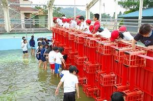 5年生はプールの中に沈めている台の清掃を中心に行いました。