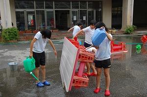 6月10日(金)この日は5,6年生によるプール清掃が昼休みからおこなわれました。